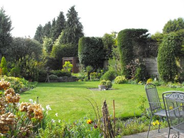 REAR GARDEN which is a lovely feature of the property, being of good size and west facing. Immediately adjacent to the property is a full width patio, a large area of lawn with mature shrub / flower borders, a pathway leads to a shingled sitting area beyond which is a timber garden shed and timber summerhouse. Outside tap.